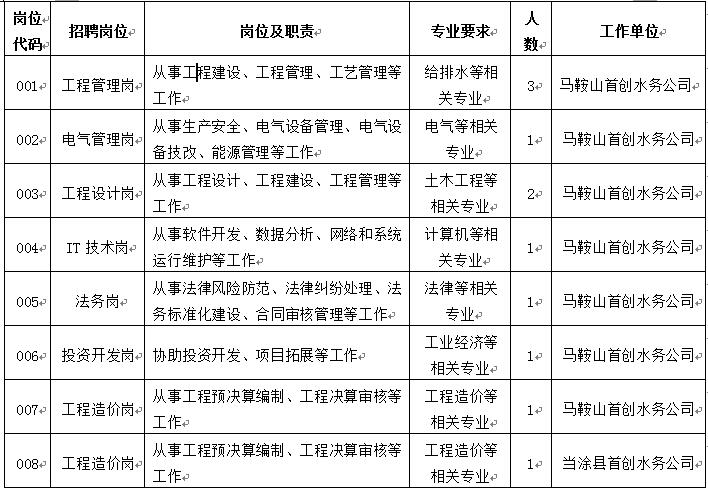 馬鞍山首創(chuàng)水務(wù)有限責(zé)任公司2020年高校畢業(yè)生招聘公告