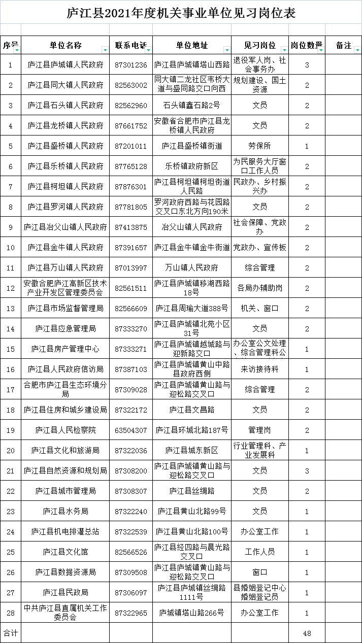 廬江縣機(jī)關(guān)事業(yè)單位見習(xí)招聘公告