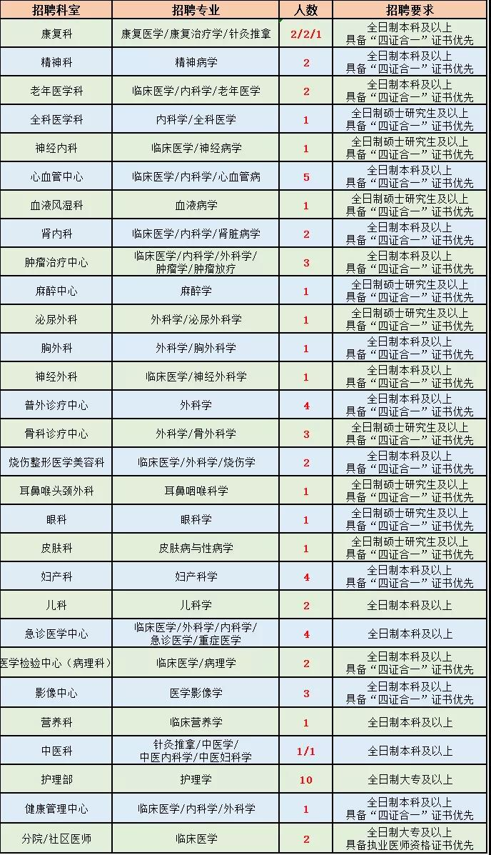 3、除以下崗位外,歡迎各科室中、高級職稱、各學科 帶頭人洽談合作。